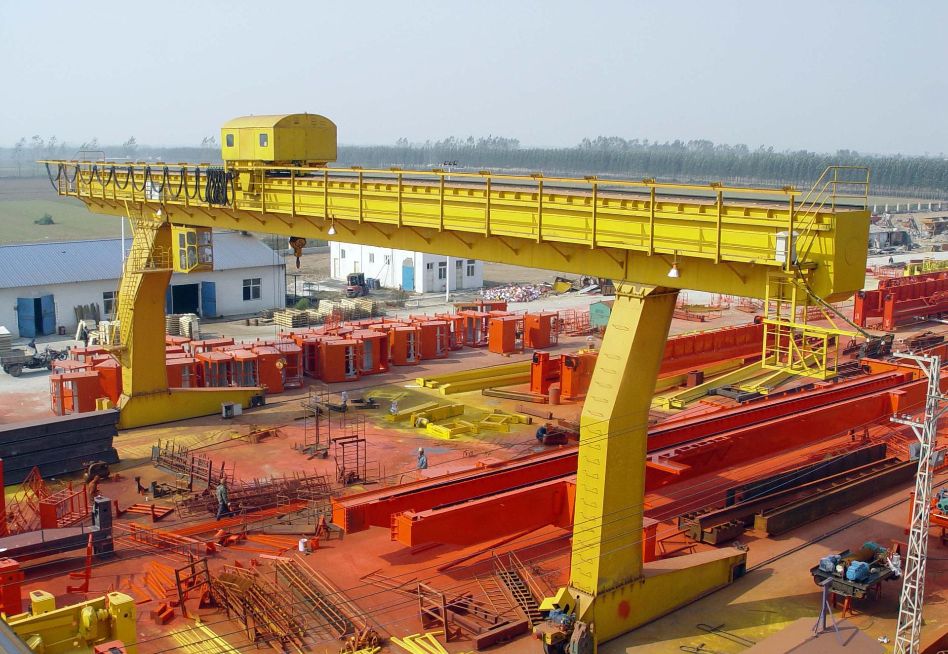 起重機有橋架、大車運行機構(gòu)、小車、電器設(shè)備等組成。橋架采用箱型雙梁焊接結(jié)構(gòu),大車運行機構(gòu)采用分別驅(qū)動,全部機構(gòu)均在操縱室操縱,起重機導電形式分為電纜和滑線兩種, 適用露天倉庫、料場、鐵路貨站、港口碼頭等裝卸搬運。還可以配以多種專用鉤具進行多種特殊作業(yè)